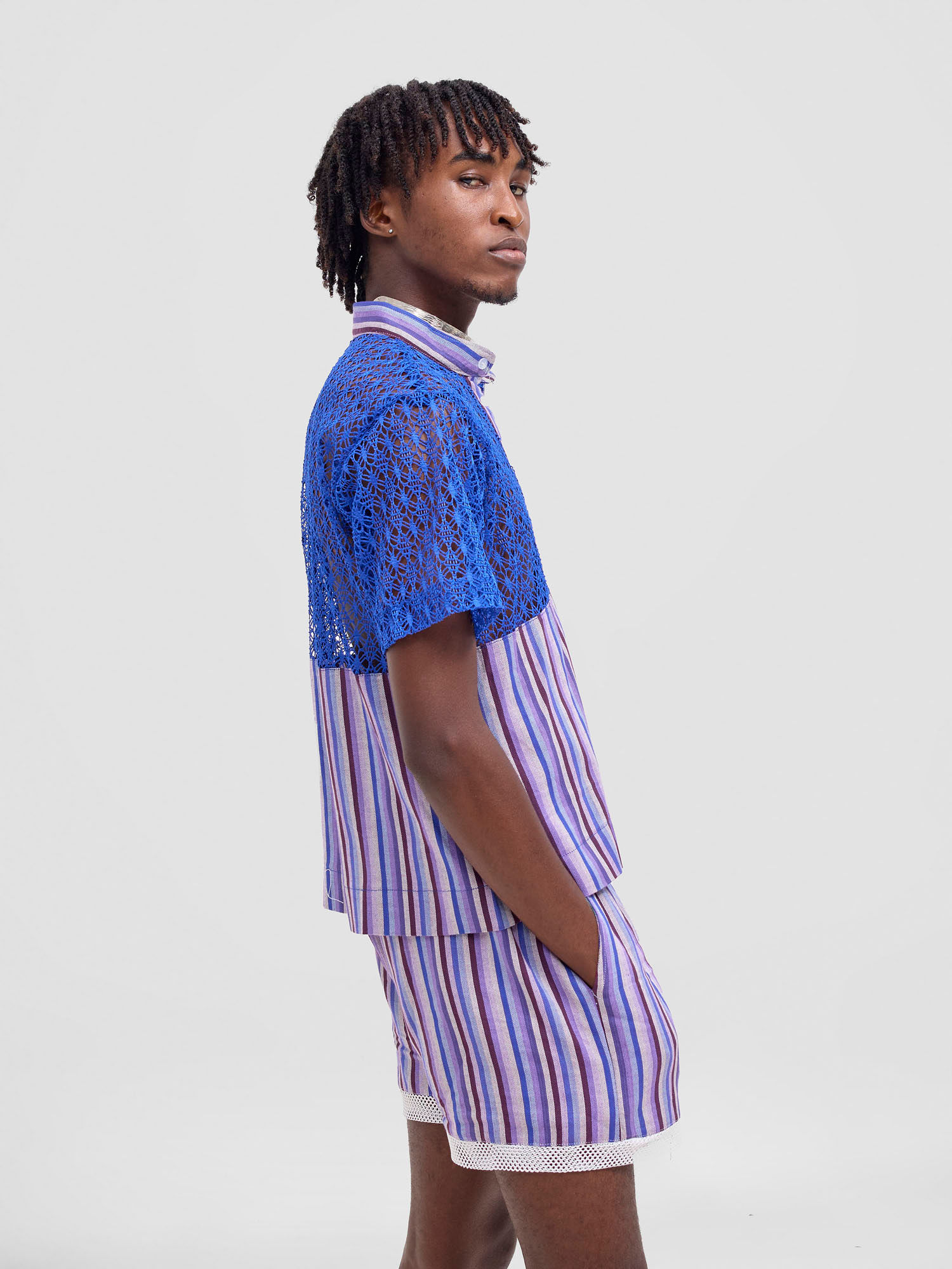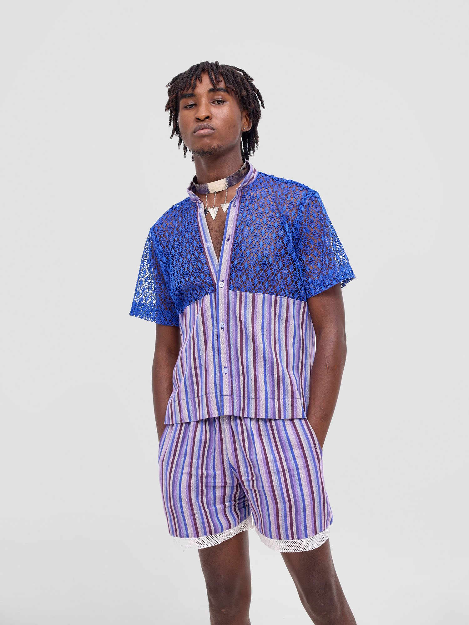 For the wanderer with softness and strength in their heart. Where tradition meets edge — this two-piece set blends breathable kikoy cotton with sheer lace to invite movement and bold softness.