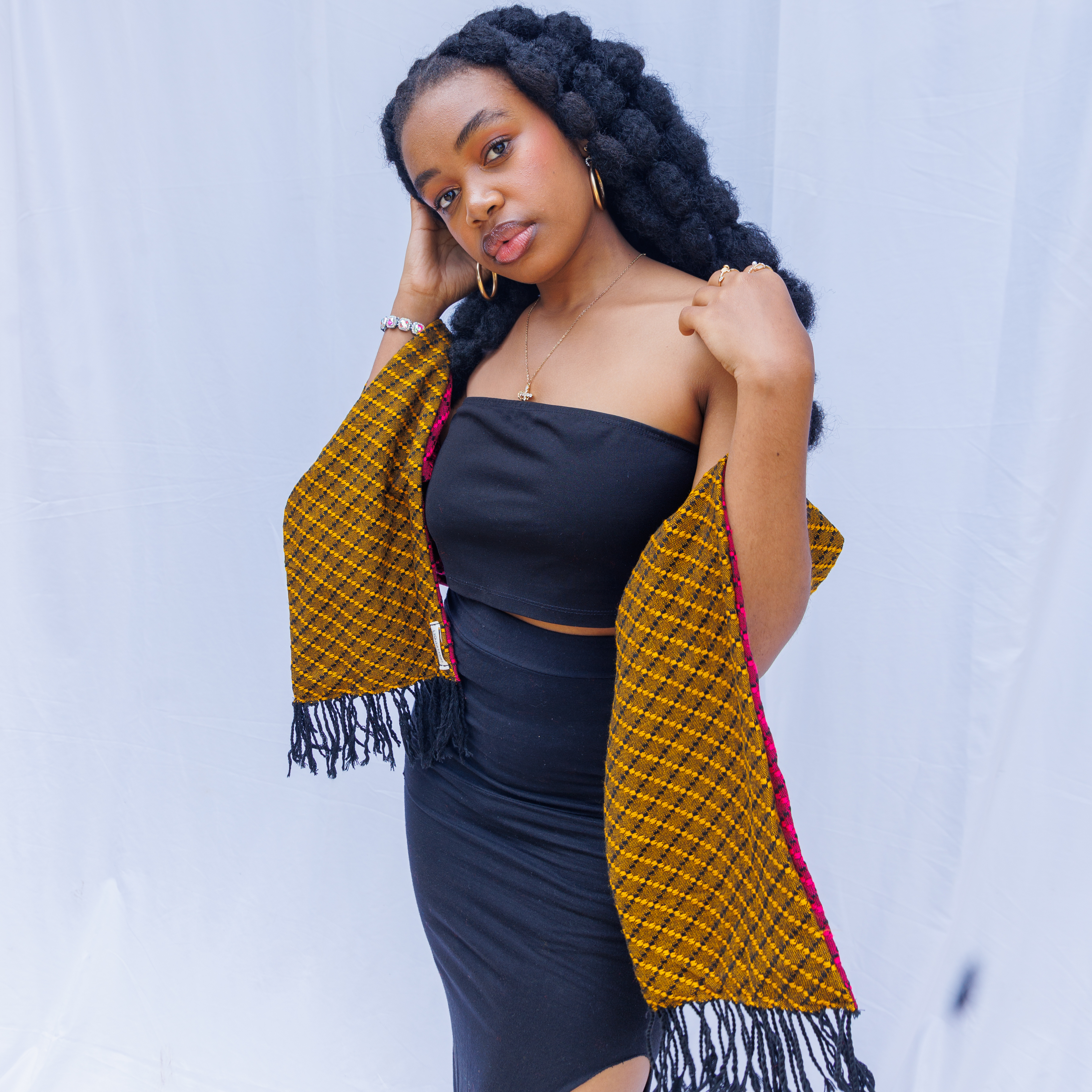 Long and cozy, this scarf carries the toughness within beauty, almasi — diamond— into your everyday wear. Woven with golden thread, it’s a soft blaze for bold hearts.