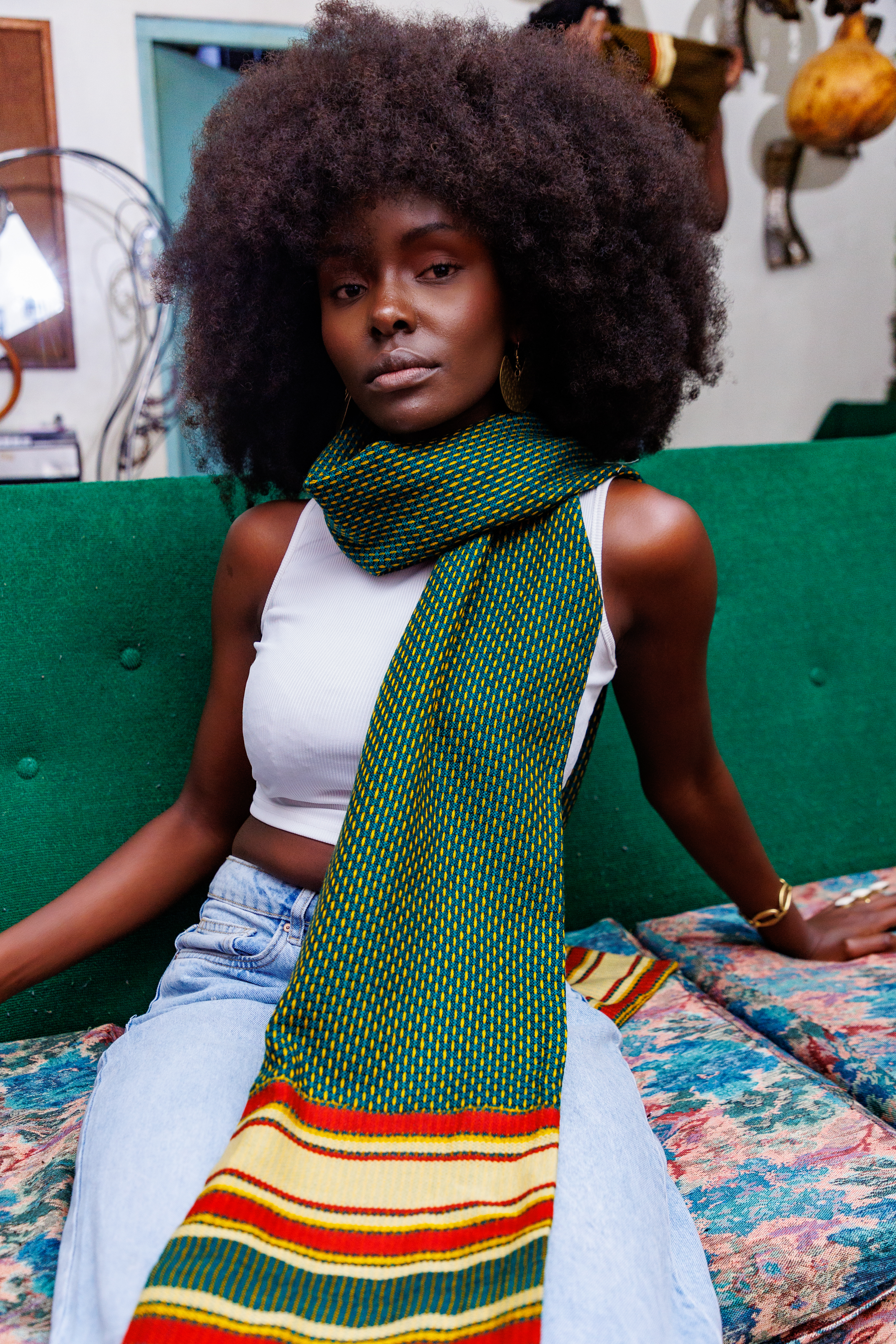🔷 Style Tip: Loop it loosely around your neck with a tank and high-waist trousers — or let it drape long over bare shoulders at sundown.