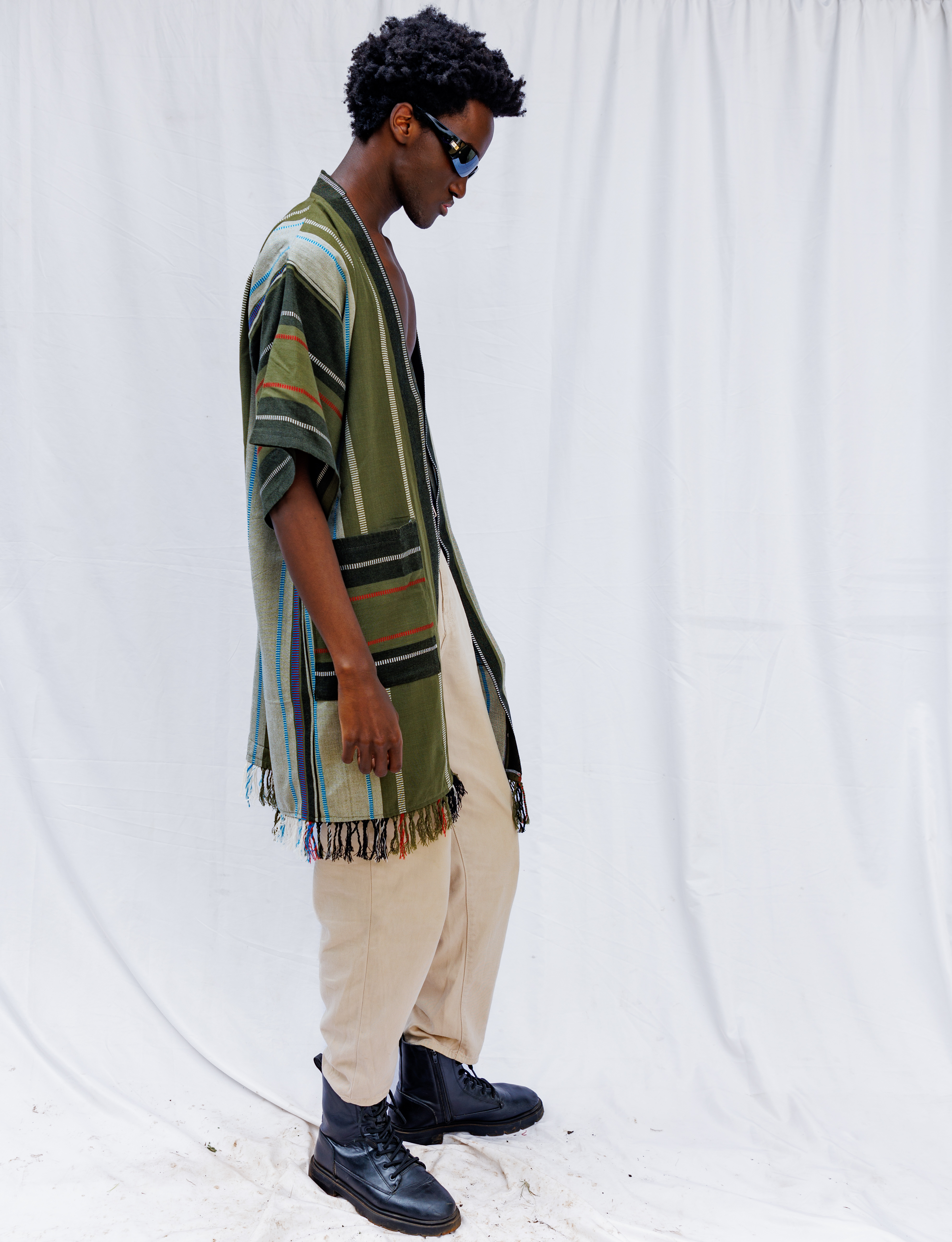 A city layer with rhythm. For those who love modern designs but still want to keep it African.This piece balances bold texture and streetwise ease for everyday movement.